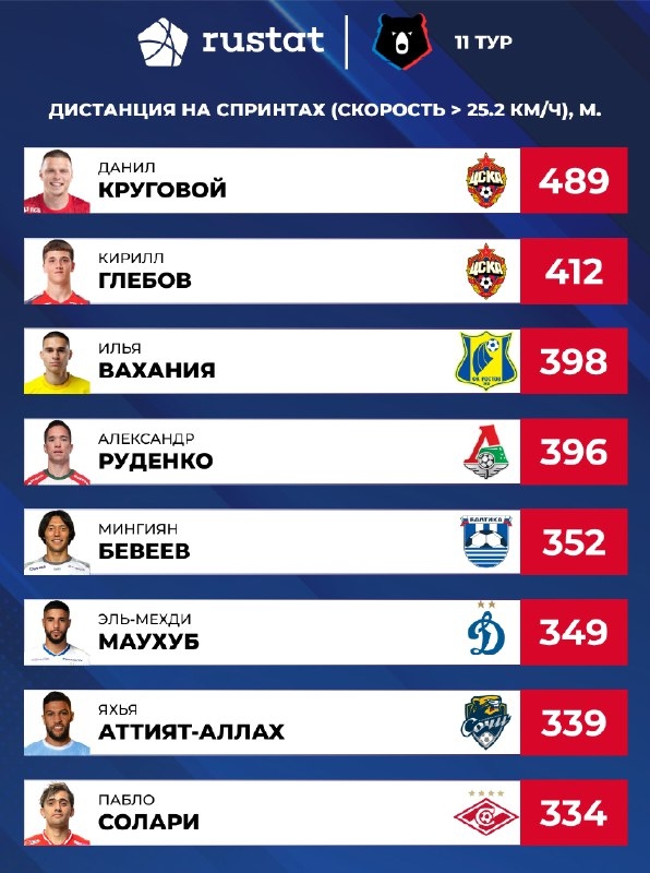 Александр Руденко преодолел тоже много — 12219 м, а также попал в топ по дистанции на спринтах